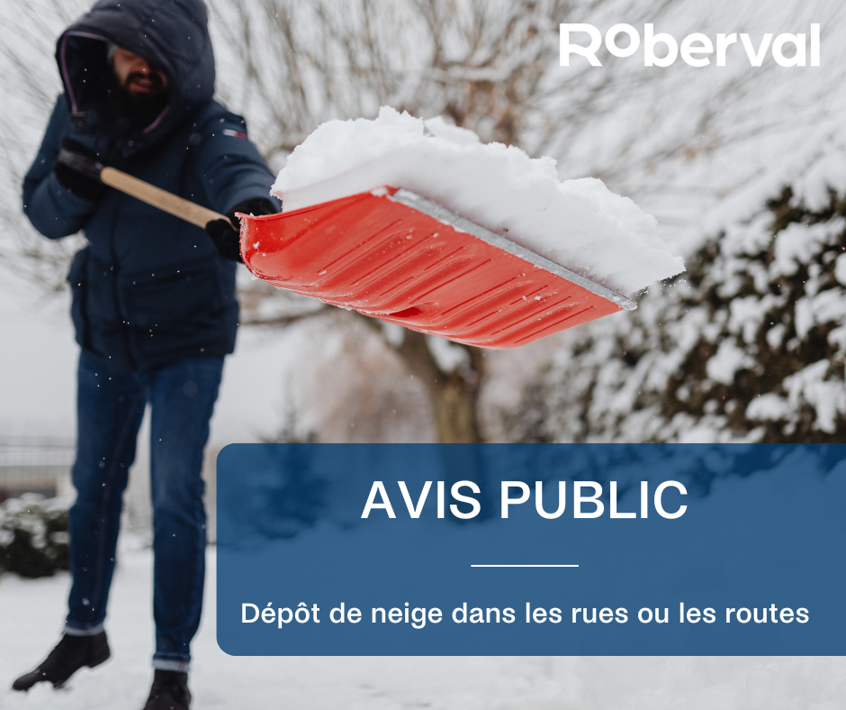 Avis public est par la présente donné à tous les citoyennes et citoyens de Roberval, qu’il est strictement interdit de jeter, déposer ou abandonner de la neige ou matière quelconque dans les différentes rues ou routes et sur un chemin public.