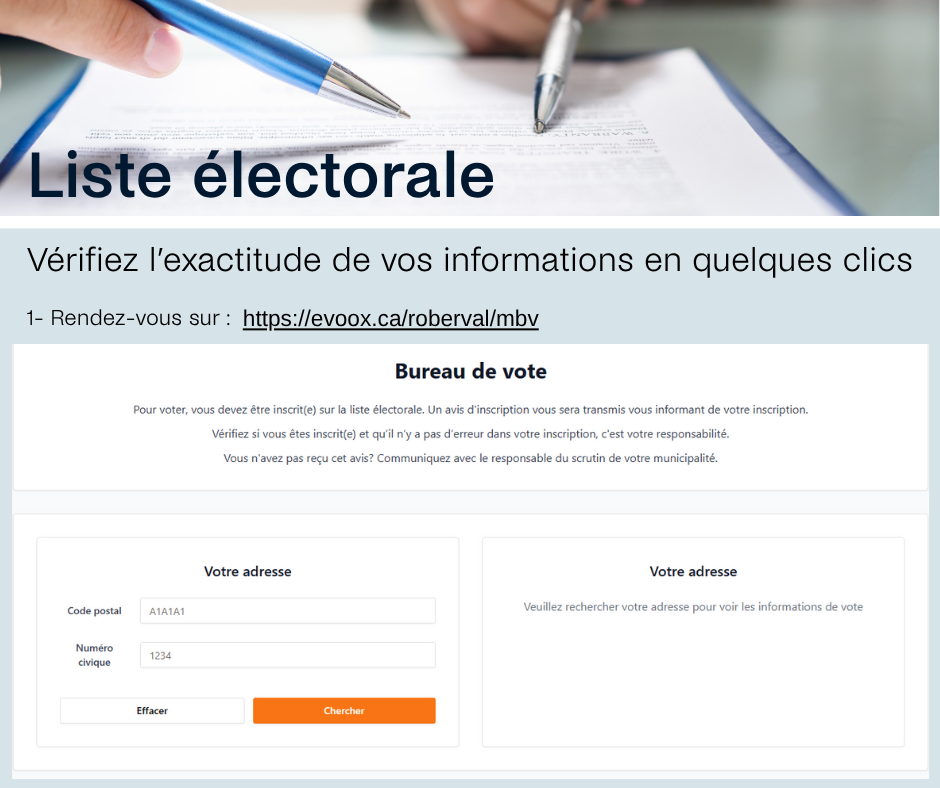 Il est maintenant temps de procéder à la vérification de votre inscription à la liste électorale en vue du 2 novembre prochain.